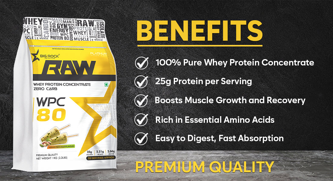 No Artificial Additives: Bigrock Nutrition ensures that RAW WPC 80 is free from artificial colors, flavors, and preservatives, providing you with a pure and effective protein supplement that aligns with a clean eating lifestyle.