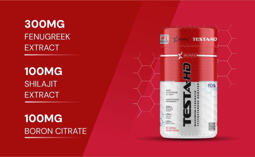 Bigrock Nutrition Testa HD Maximum Testosterone Booster is a premium supplement designed to support natural testosterone levels and enhance overall male vitality. This advanced formula combines powerful ingredients to promote healthy testosterone production, improve strength and performance, and support optimal hormonal balance.