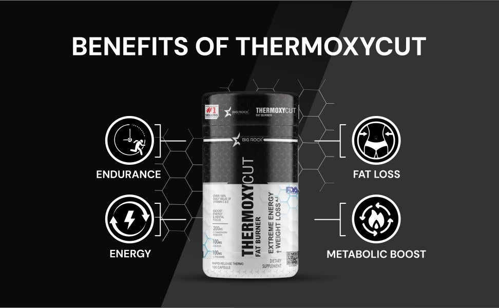 Bigrock Nutrition Thermoxycut Fat Burner is a potent weight loss supplement designed to support fat metabolism, increase energy levels, and enhance overall fat-burning efficiency. Formulated with a blend of cutting-edge ingredients, Thermoxycut aims to help you achieve your weight loss and body composition goals effectively.